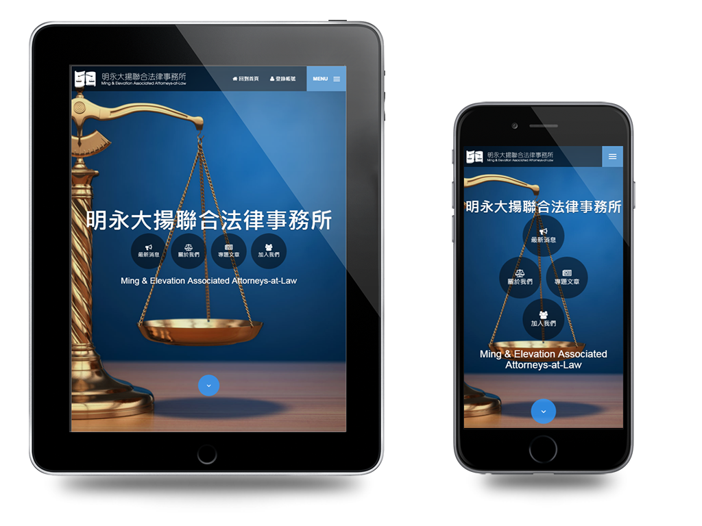 我們採用RWD方式設計網頁,確保每一個網頁能方便使用者同時於手機與電腦觀看,可以後台管理的文章系統增加了圖片最寬限制,讓律師管理內容時上傳再大張的圖片也不會產生版面錯置的情況。