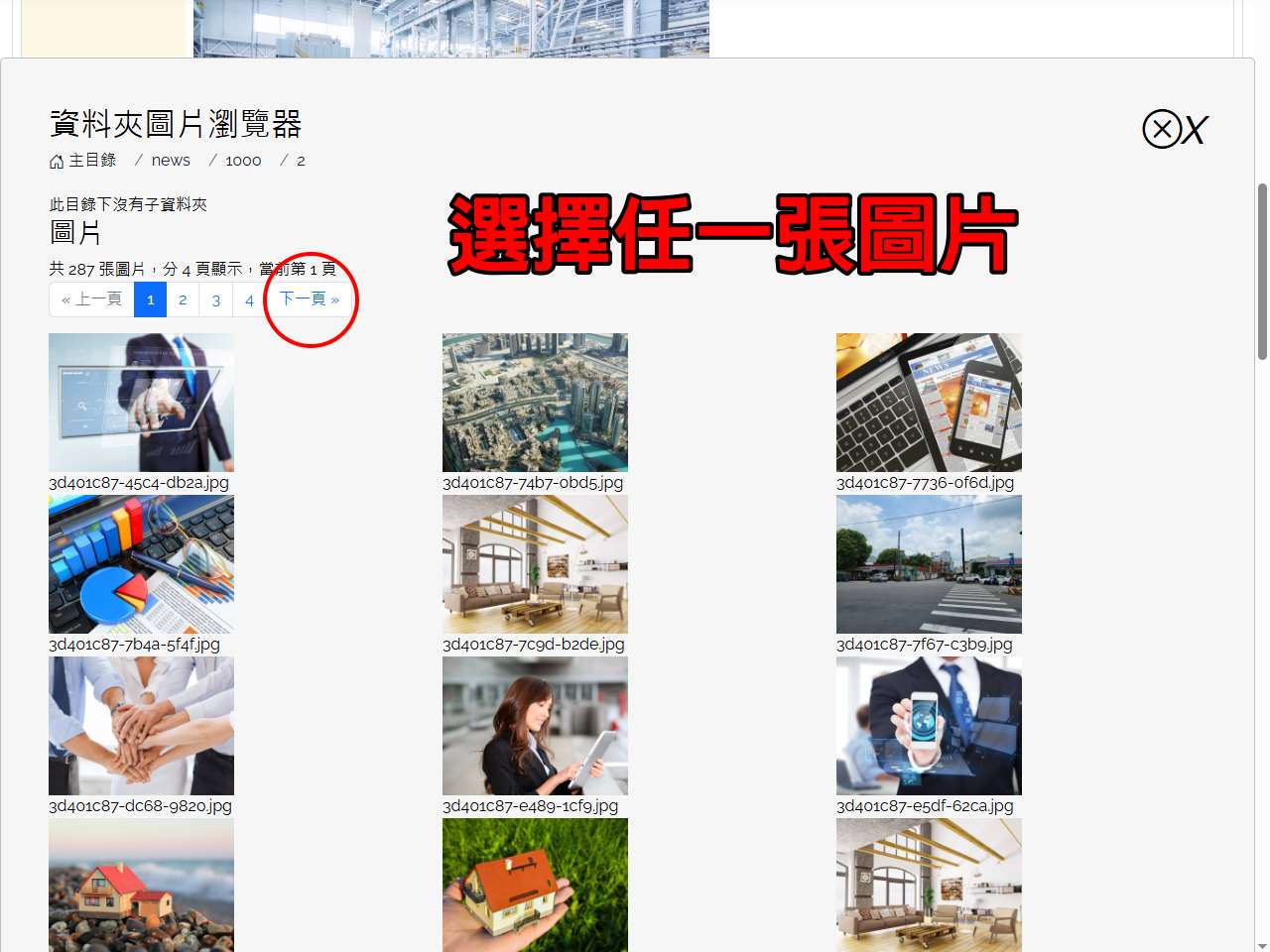 選擇任一張圖片即完成設定,如果圖片很多,可以選擇頁碼進入其他頁面查圖再選圖。